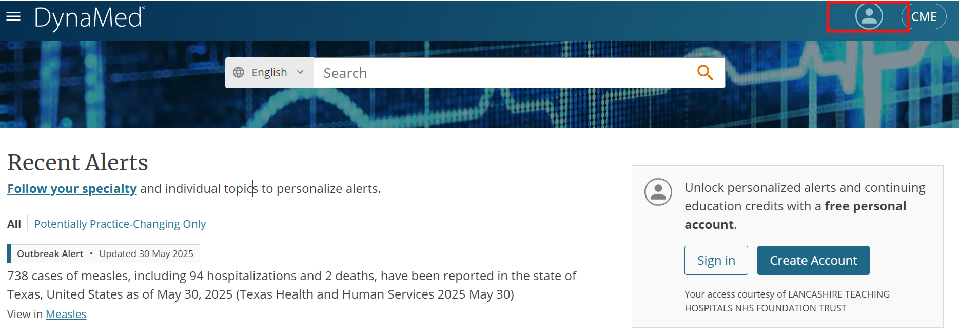 - You will see your CME credits in the top right-hand screen. Click on your CME Credits icon.