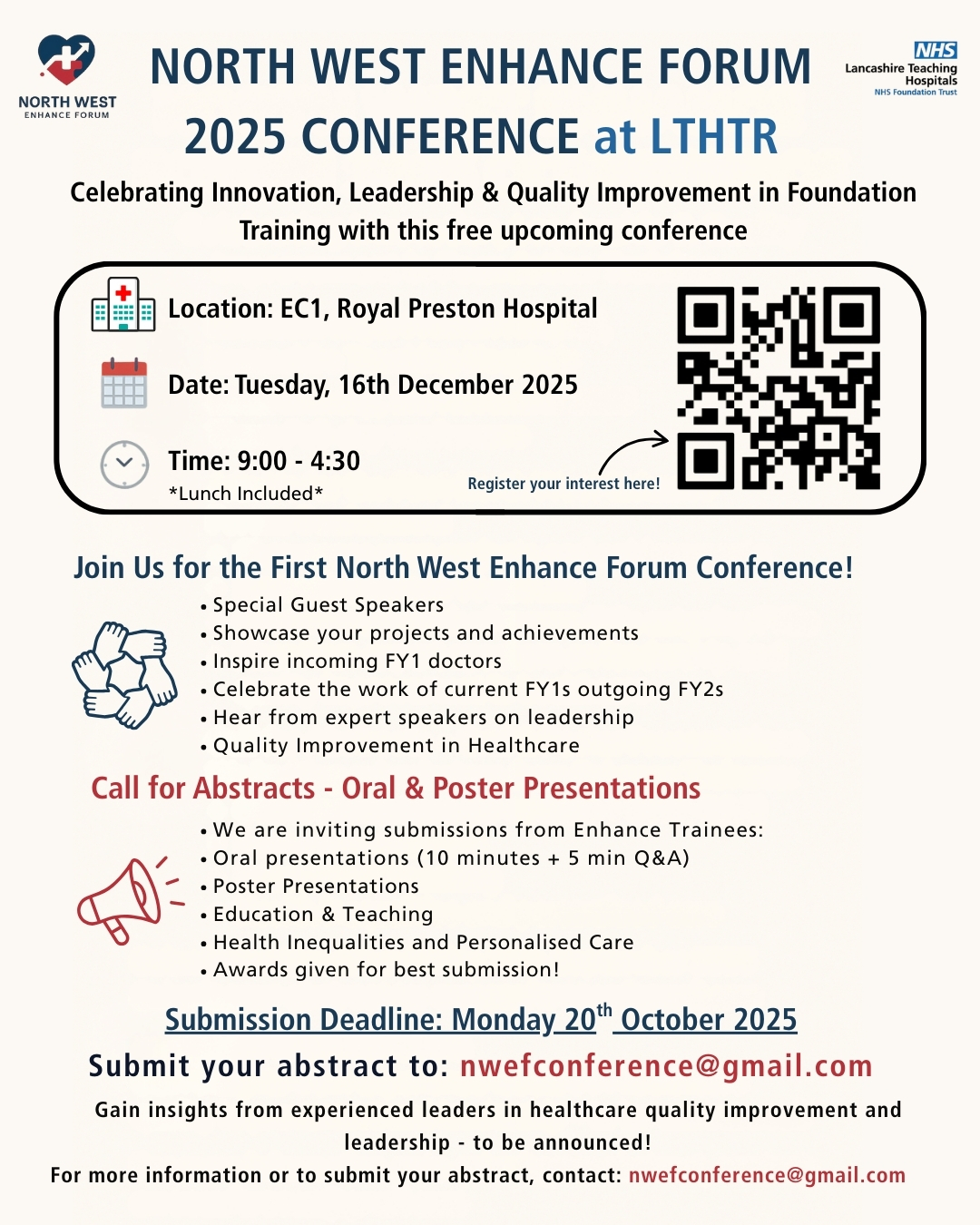 Lancashire Teaching Hospitals will host its first Enhance Forum Conference on Tuesday, 16th December 2025, at Royal Preston Hospital (EC1).